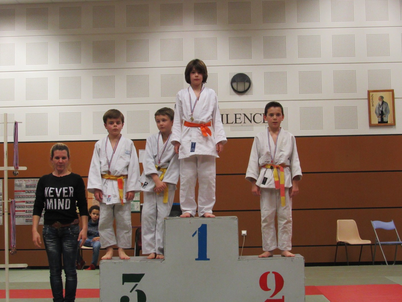 S’est tenu à St Brévin le district de la zone ouest (il y a quatre districts par département) et dans la catégorie poussins en –30kg Valentin Laé se classe 1er en remportant tous ses combats par Ippon, Jules Honoré termine 3è en – 34kg en remontant ses repêchages (après avoir perdu son 2è combat) et Léo camus fait 5è. Pour leur première participation à une compétition officielle, nos trois judokas se retrouvent qualifiés pour le Championnat départemental du 20 mars à Nantes où ils rencontreront les cinq premiers de chaque district dans leur tableau respectif qui comprendront environ une vingtaine de combattants.
