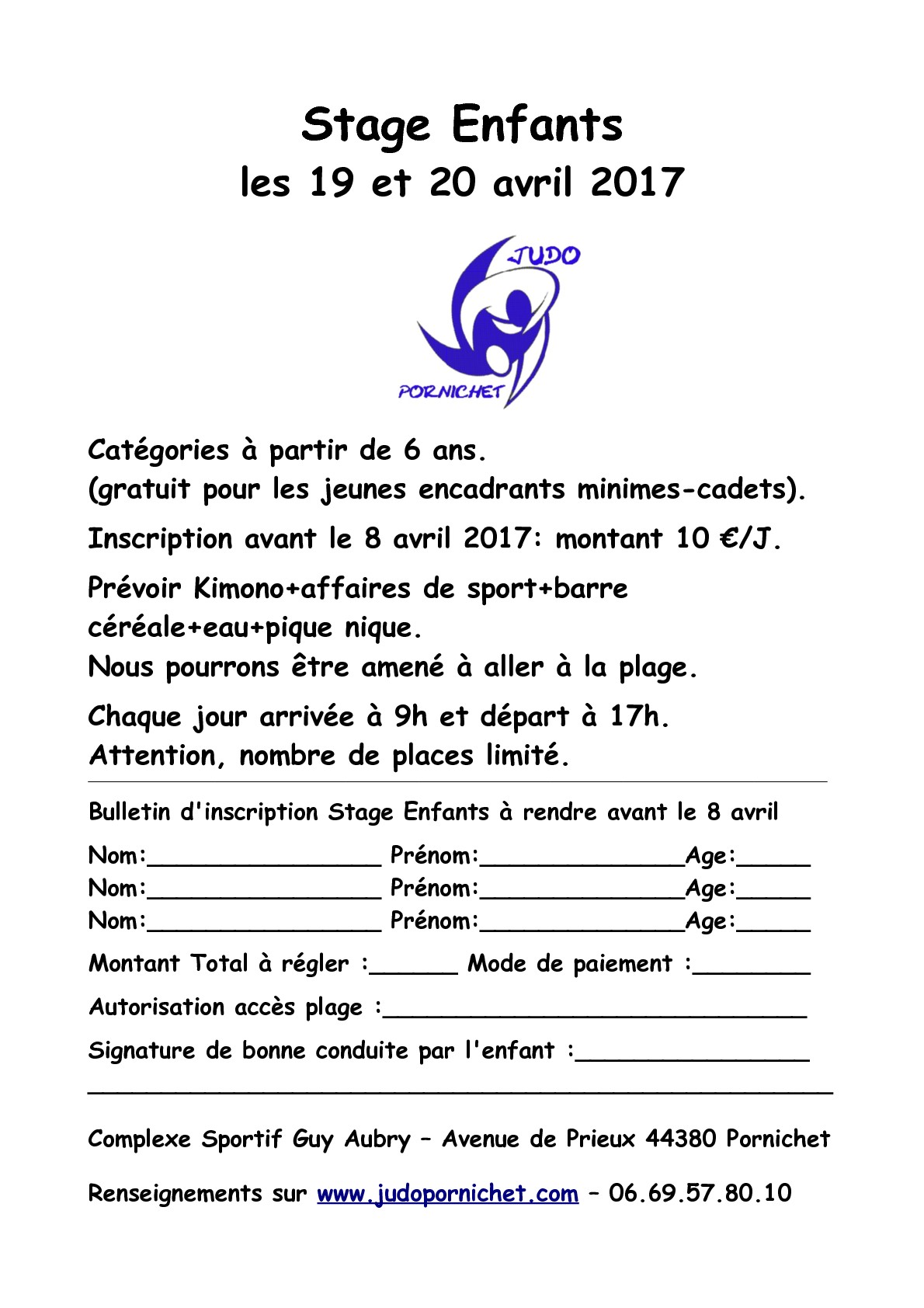 Nous organisons un stage de Judo les 19 et 20 avril 2017 de 9h à 17h au complexe sportif .