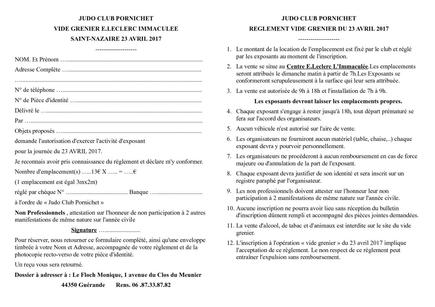 Nous organisons un vide grenier le dimanche 23 avril 2017 au centre E.Leclerc de L’Immaculée à Saint Nazaire.