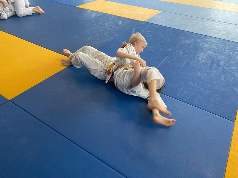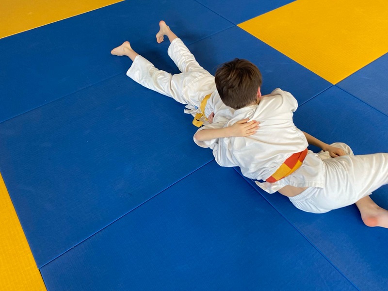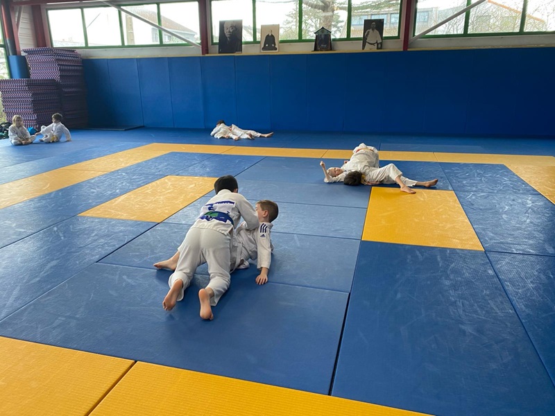Cyril raconte les 2 journées : « le mercredi, nous avons fait du judo principalement l’après-midi, et avons privilégié des jeux le matin, en l’occurrence dans le dojo et dans la petite salle de tennis de table. Le jeudi, nous avons fait plus de judo, environ 2h par demi-journée, avec du travail sur le retournement, comme le montrent les photos. Les jeunes de Pornichet sont super agréables et bienveillants. Les deux midis, nous avons pique-niqué en restant tous ensemble, installés sur les tables que nous avons positionnées en carré devant les vitres : c’était très convivial. »