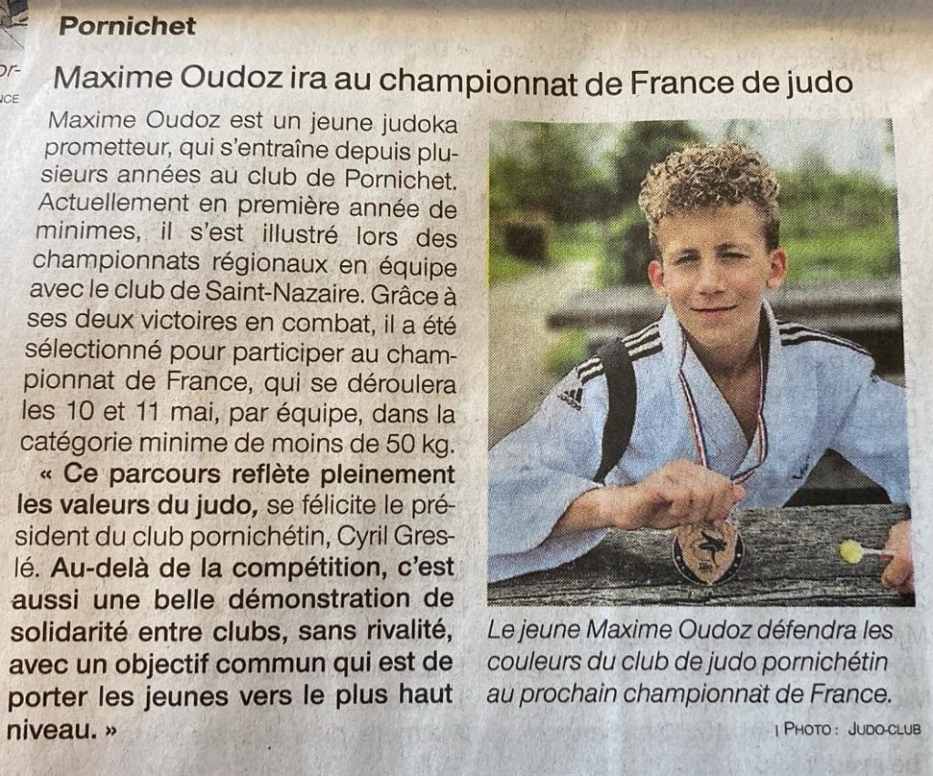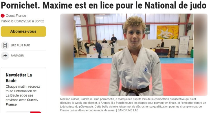 // Article web sur le Ouest France du 27 mai, mettant en avant la médaille de bronze de Maxime